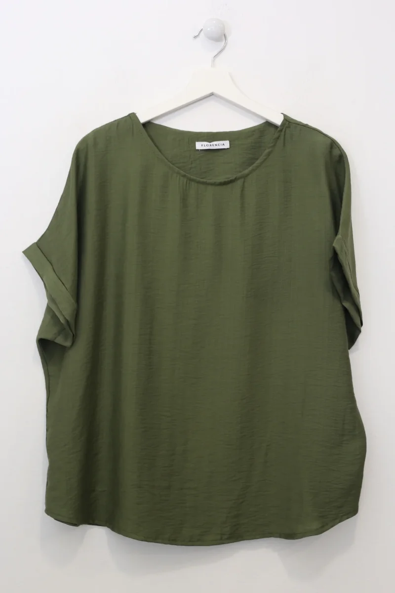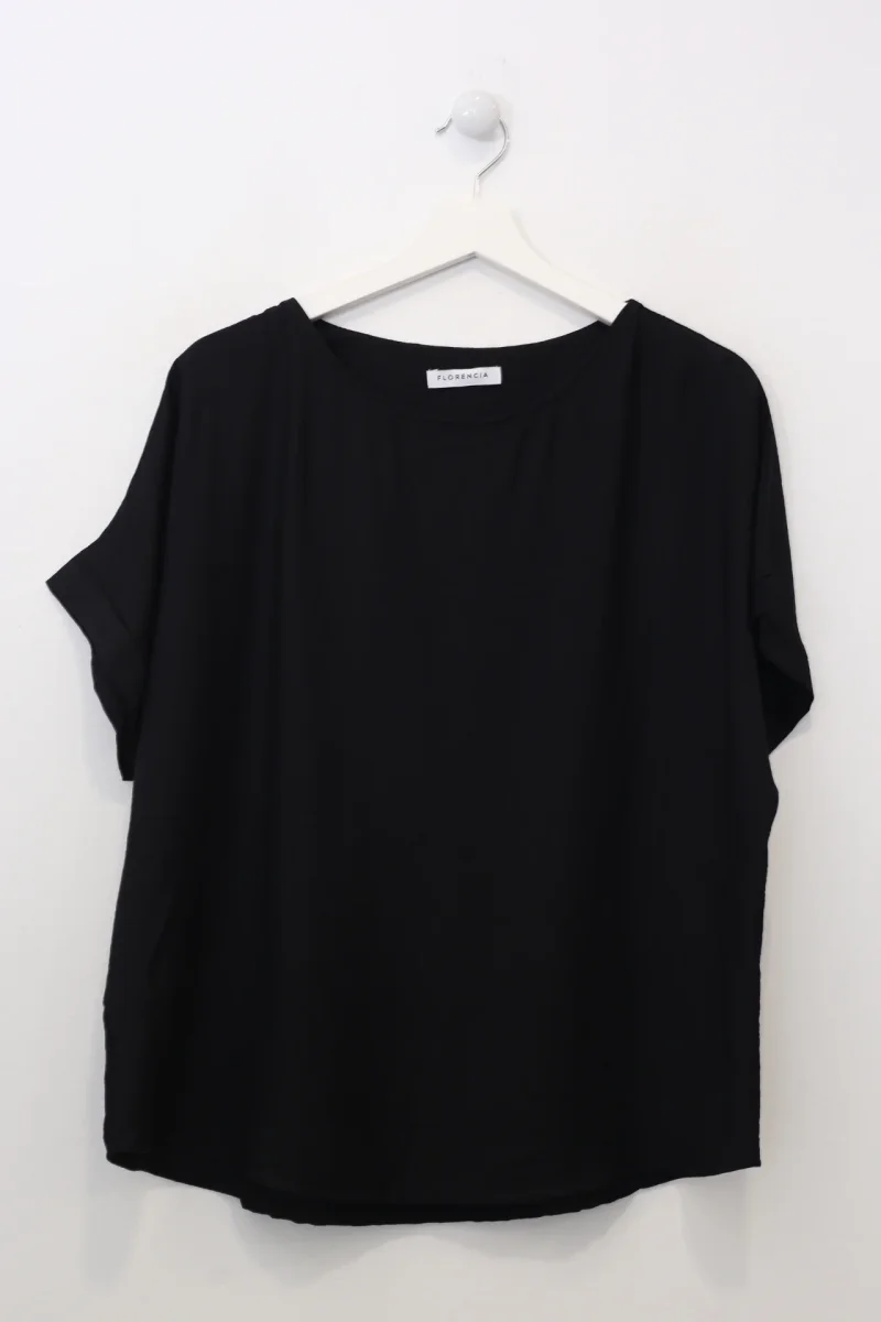 Blusa con cuello redondo y manga corta. Corte amplio.