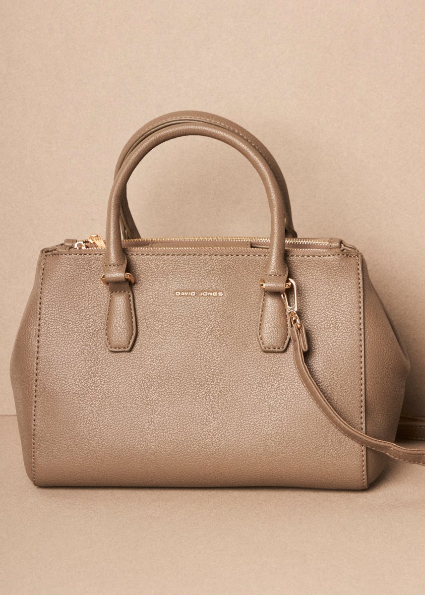 Bolso tipo shopper. Asas de mano y asa de hombro larga ajustable y extraíbles. Cierre mediante hebilla oculta y doble cremallera. Tres compartimentos, bolsillo y forro interior.