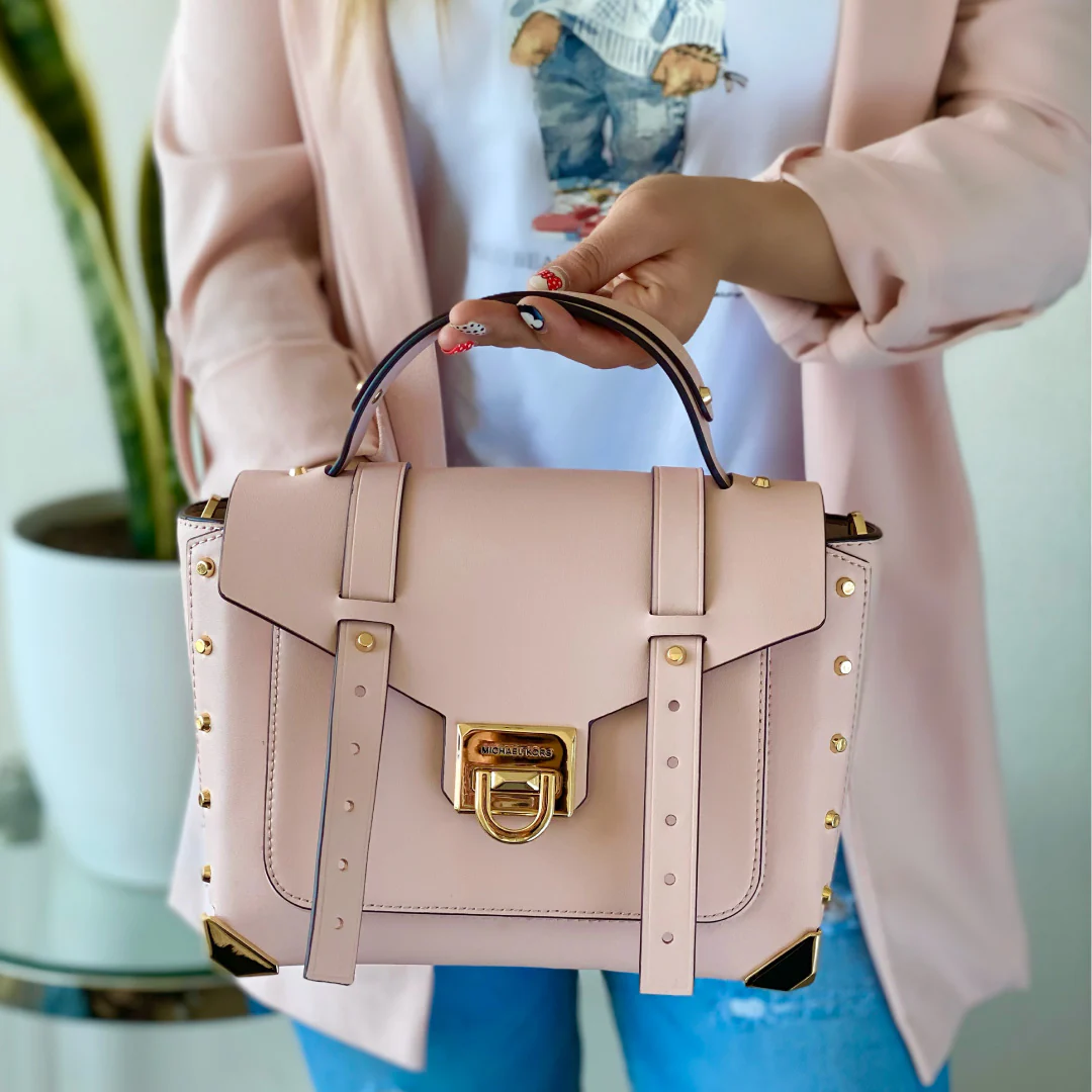 HERMOSA CARTERA MANHATTAN COLOR ROSADO CON DETALLES EN DORADO INTERIOR COMPLETAMENTE FORRADO CON MULTIPLES BOLSILLOS DENTRO Y UNO EN EL EXTERIOR