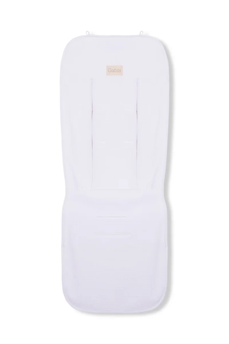 Funda para silla de paseo universal confeccionada en piqué blanco. Se adapta a una gran variedad de modelos de carritos gracias a su diseño con amplias aberturas para los tirantes.