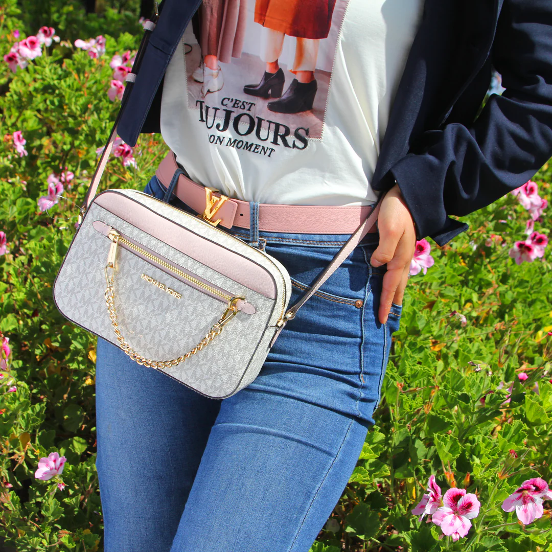 El Crossbody Michael Kors Jet Set Item Large Logo Powder Blush Multi es un bolso