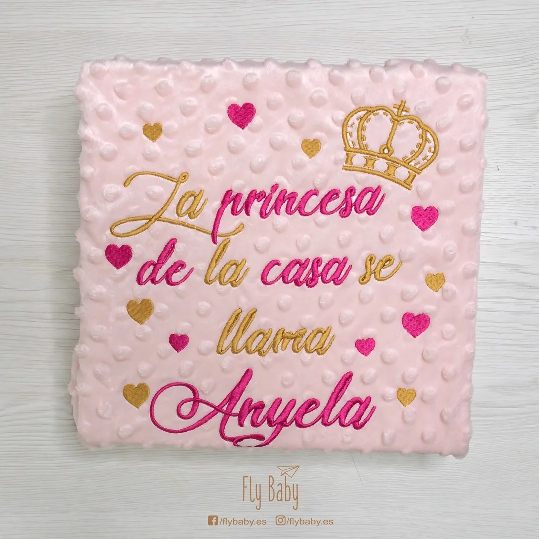 Manta para bebé súper suave de topitos personalizada con la frase ” La princesa de la casa se llama ”