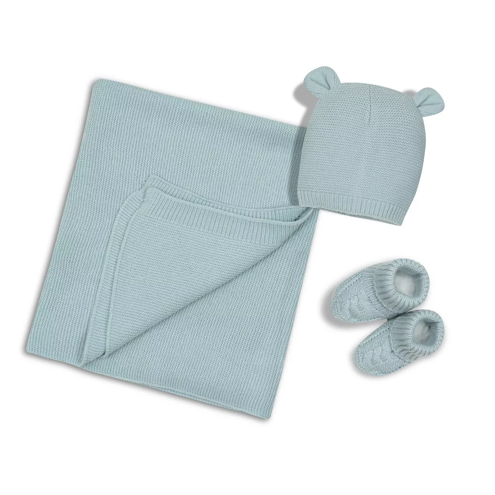 Este set de tres piezas incluye todo lo necesario para mantener al bebé abrigado desde el primer momento: