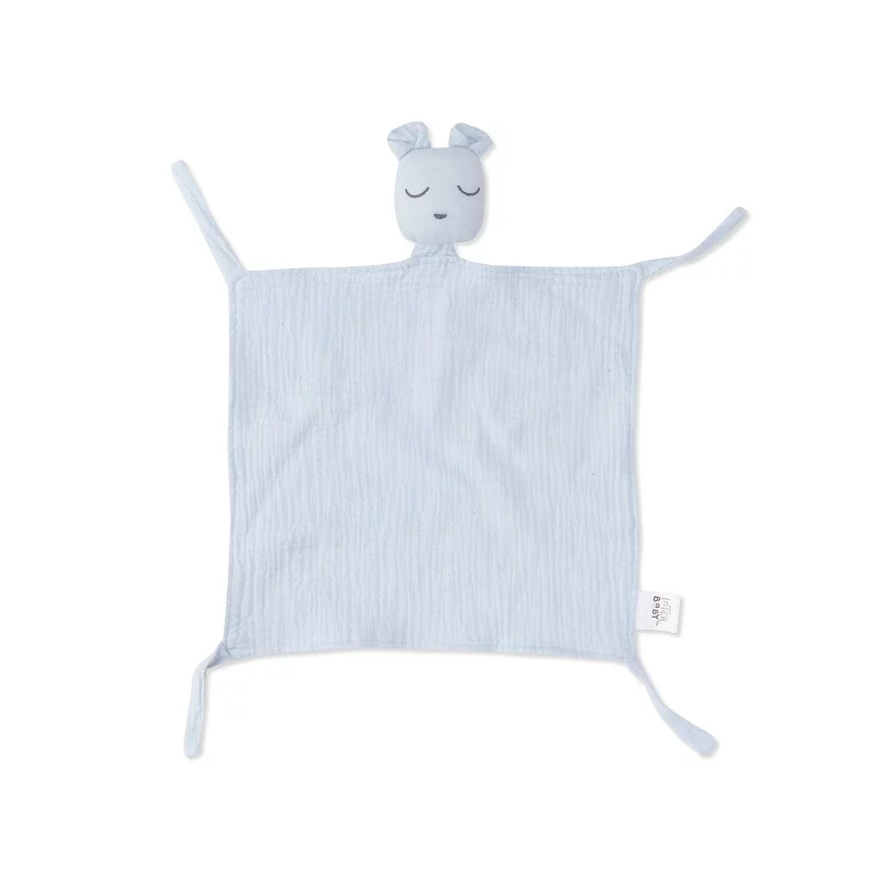 El set consta de un dou dou con la cabeza de un osito, un mordedor y un babero bandana, todos confeccionados con suave tela de gasa de 100% algodón. Estos tres elementos, diseñados con colores a juego, proporcionan al bebé una sensación de confort y seguridad en todo momento.
