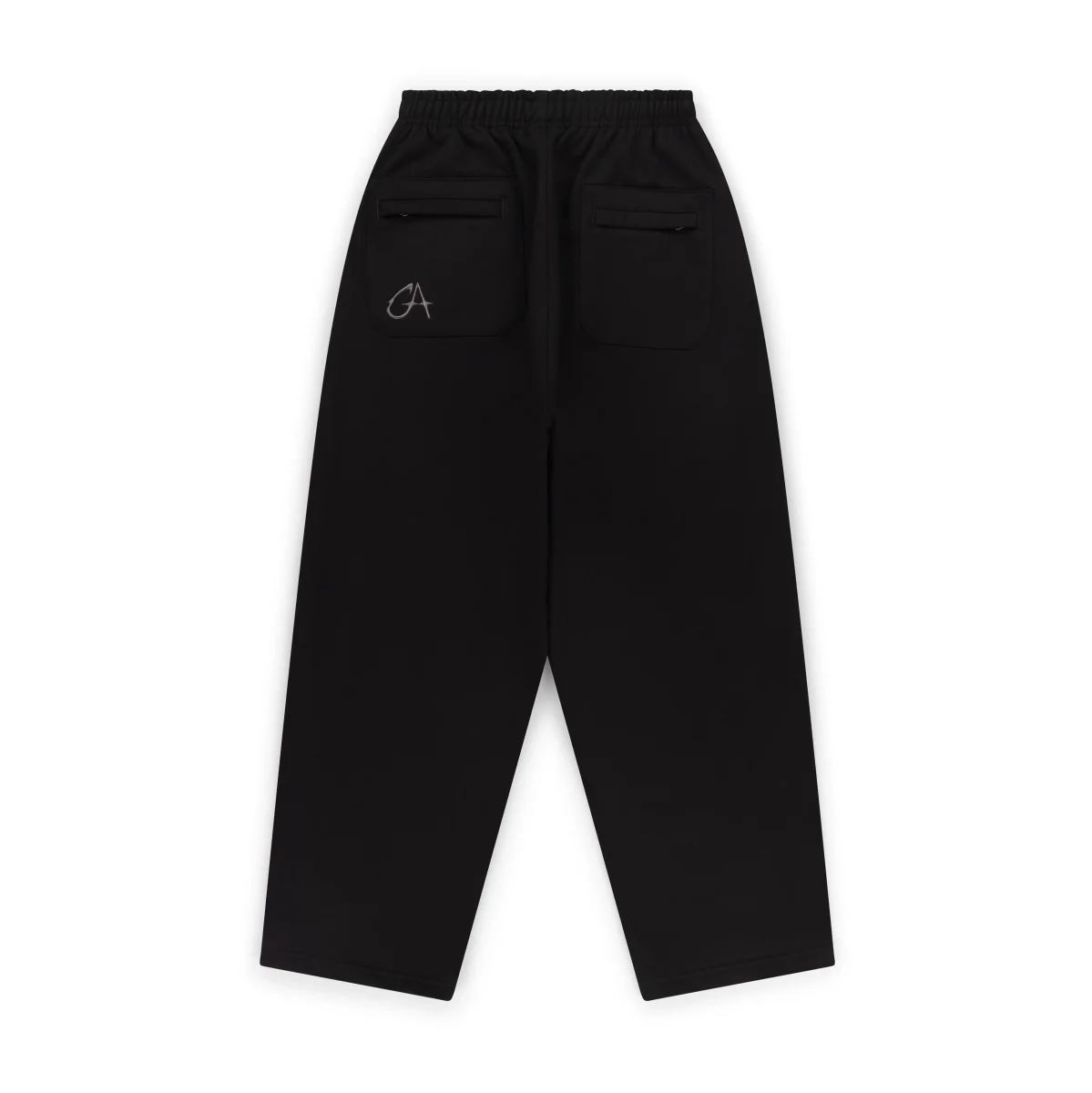 Introducing the Garms Affiliated Signature Uncuffed Joggers in Black. These joggers are pre-shrunk and designed to stack perfectly on your shoes. Crafted from a 500 GSM premium cotton blend to reduce shrinkage and keep your sweats looking fresh long-term. Featuring 4 zip pockets across the front and back.
